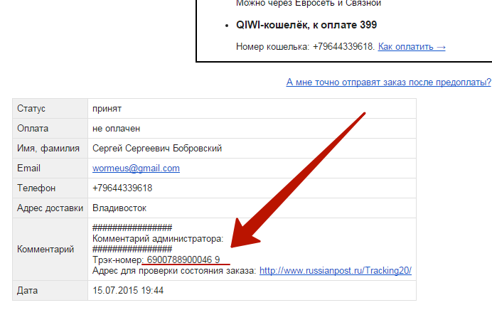 После того, как Ваш заказ отправлен, на почту придёт трэк-номер.