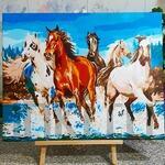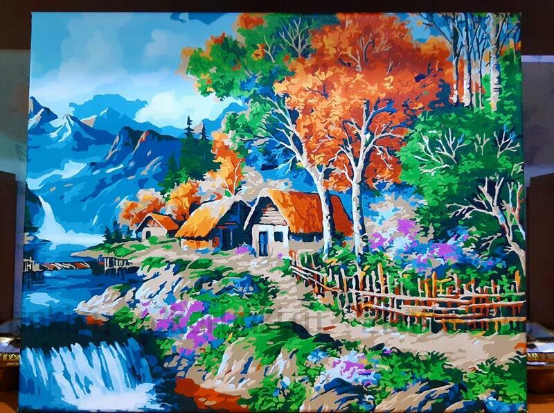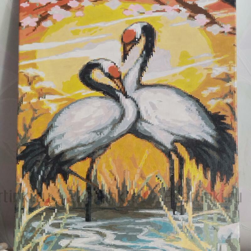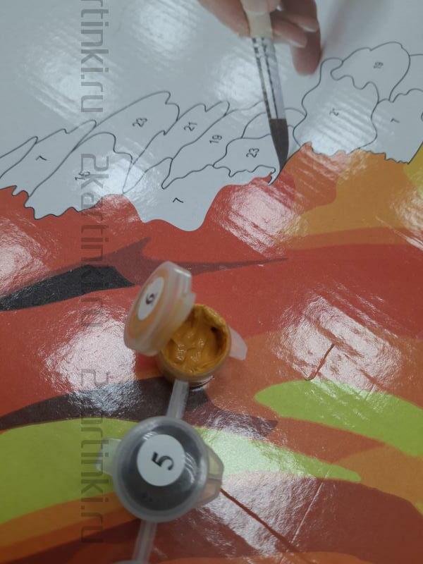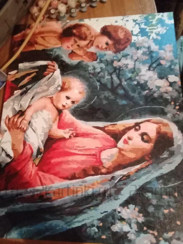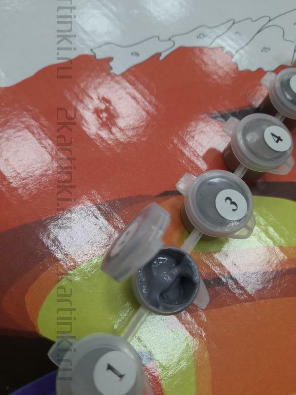 Можно наносить несколько слоев, подождав высыхание предыдущего слоя, либо сделать бледней цифру под светлый тон, есть множество способов (например, на ватную палочку нанести жидкость для снятия лака и немного потереть). Достоинства акриловых красок: совершенно не токсичны, яркие оттенки, не теряет блеск никогда в готовой работе - лак не обязателен, не выгорает на солнце, при высыхании пластичны( не трескаются), и если используются наши холсты европейского качества (такие же эластичные, подстраиваются под изменение форм краски при смене температур и влажности), то готовая работа будет дарить радость бесконечно.