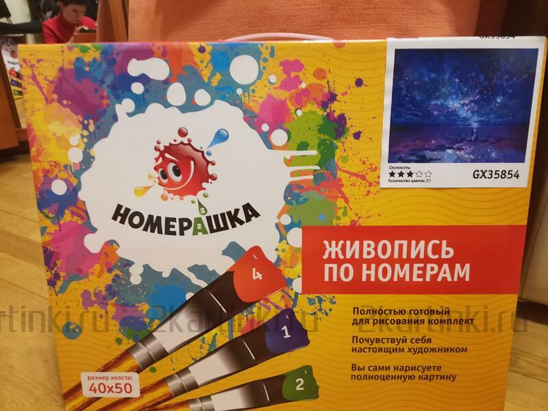 Добрый день.Отличная картина но краски не соответствуют самой картине и приходиться смешивать ,что бы получить желаемое.Картина не простая не для новичков.Краски подсохли приходилось разводить водой.,но занятие очень увлекательное.Дерзайте и все получится.