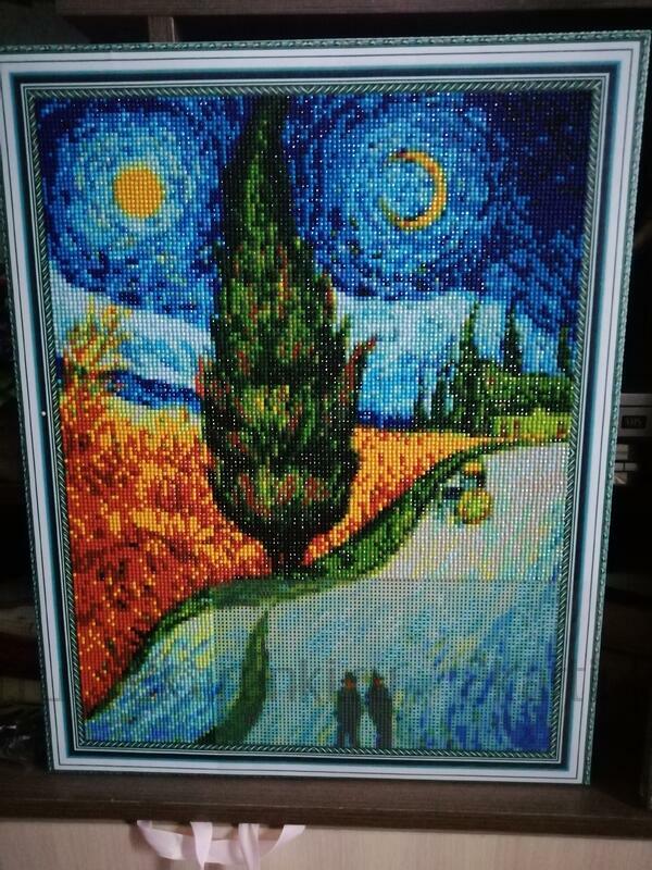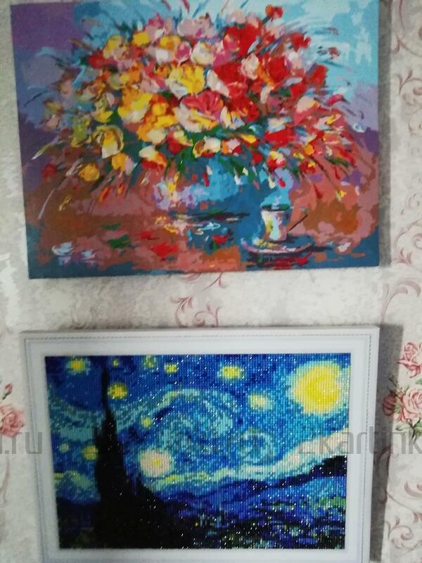 В описании было заявлено ,что она на подрамнике .На самом деле просто картонка,никакого подрамника нет .Повесить на стену такую картинку не получится,а