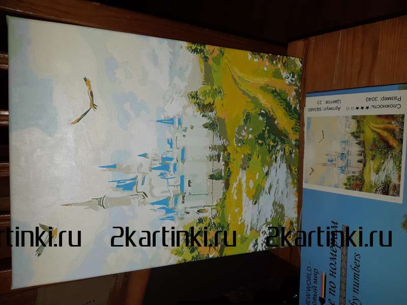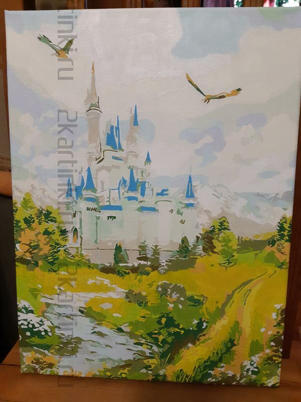 Раскрасили пока только одну картину замок арт SQ3680. Изначально выбирал замок с лошадьми на сайте, но была ошибка, пришла без них, ошибку на сайте исправили. В итоге закончили картину, нет цветов на поляне, много деталей упущено на замке. Итог на фото во вложении.
