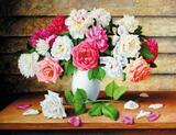 Алмазная вышивка «Белая ваза с пионами и розами» 40x50 см