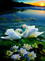 Алмазная вышивка «Пара белых лебедей на воде»