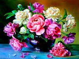 Алмазная вышивка «Пионы в черной вазе» 40x50 см